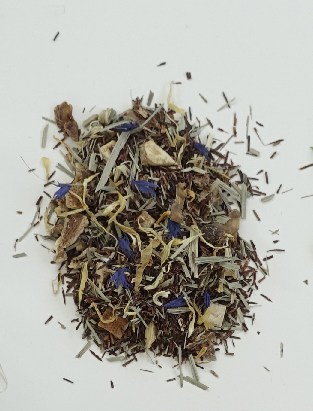 İçeriğinde bulunan bitkiler ; rooibos (kırmızı çay), limonotu, limon kabukları, mavi kantaron yaprakları, nergis çiçeği yapraklarıdır.
